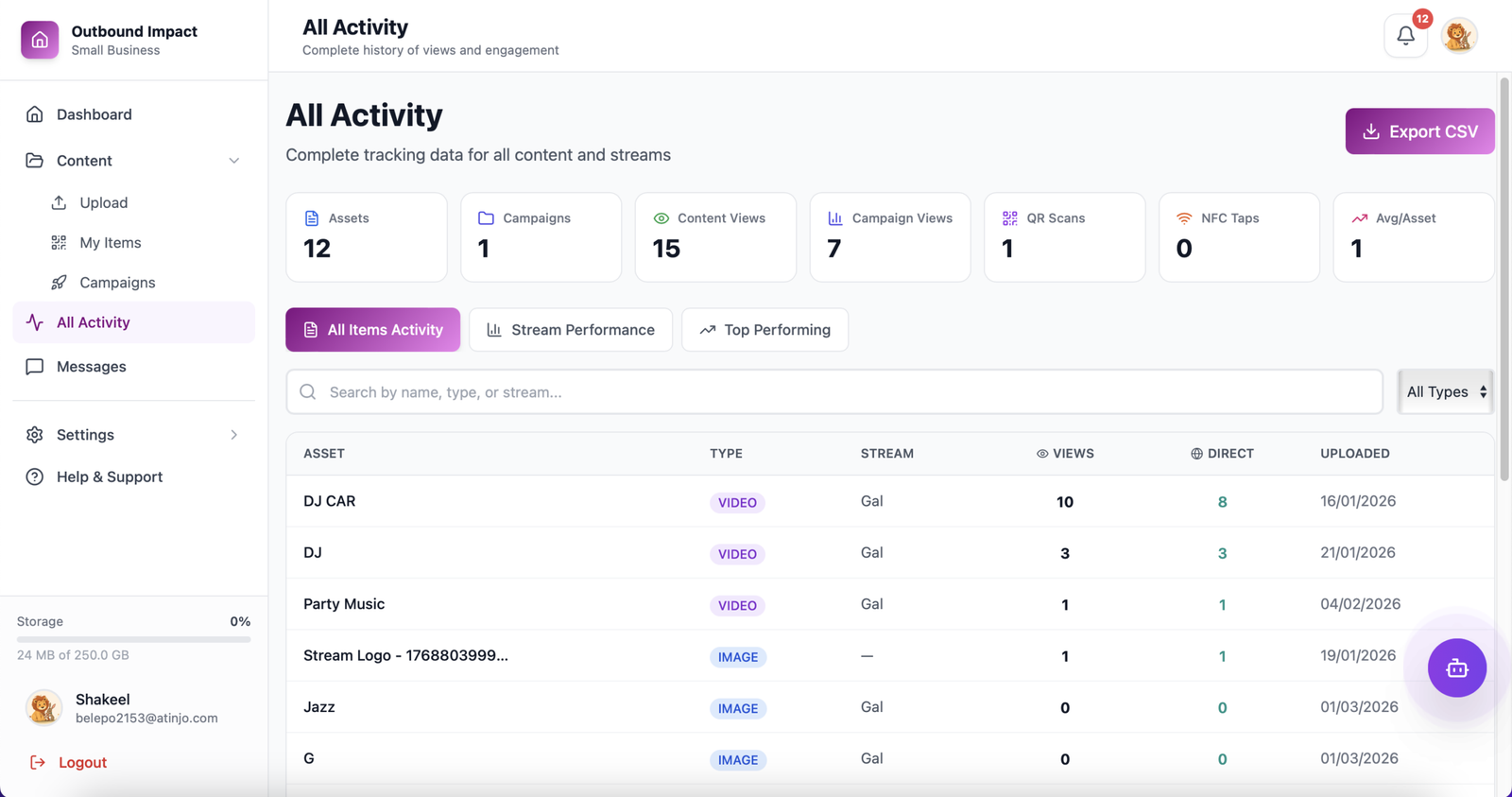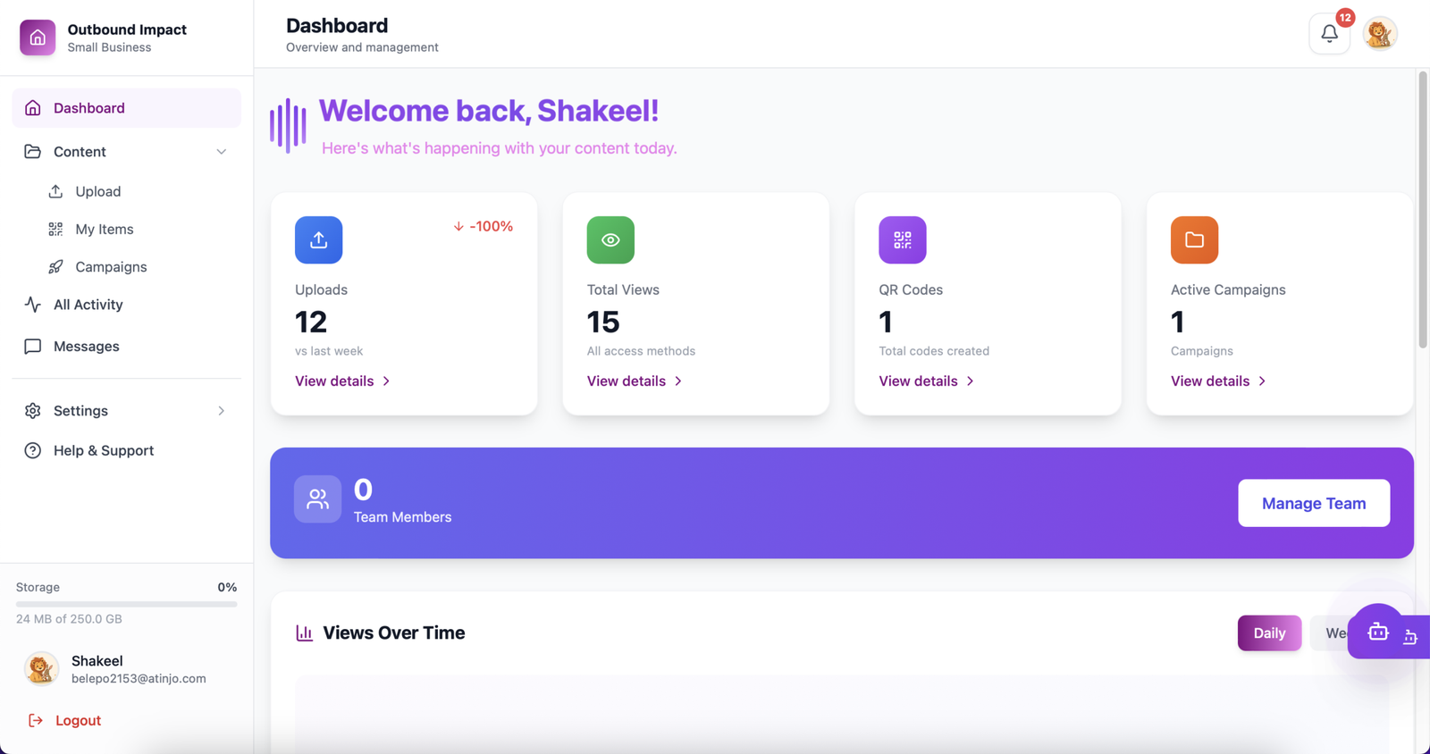 Outbound Impact is a storytelling and engagement platform that helps people share videos, photos, audio, and messages through QR codes, NFC tags, and clean digital experiences. It's built for real-world impact, helping creators and organizations communicate clearly, connect authentically, and share content effortlessly.